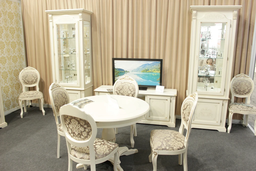 Верность классике и виртуозные дизайнерские решения в классическом стиле – то, что делает бренд «Молодечномебель» узнаваемым и любимым покупателями во многих странах мира. Все классические коллекции предприятия выполнены с использованием массива древесины ценных пород: дуба, ольхи, бука, ореха. И одно из самых изящных дизайнерских решений от мастеров ЗАО «Молодечномебель» — набор мебели для гостиной «Янина». Набор выполнен с использованием массива ольхи и шпона бука на лицевых поверхностях. Украшает мебель витиеватый рисунок. Классический стиль дополнен привлекательными деталями: это изящный декор в виде резных элементов, наличие профильных карнизов, цоколя, двери рамочно-филенчатой конструкции.