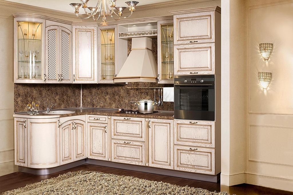 Модульная программа для кухни «Злата» создает восхитительную атмосферу настоящей классики. Фасад полностью изготовлен из массива дуба, каркасы шкафов – из ДСП ламинированной.
